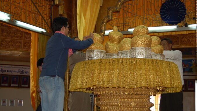 The Phaung Daw Oo Pagoda itself is an important Buddhist pilgrimage site, home to five revered golden Buddha statues. These statues, which are believed to have been consecrated in the 18th century, have become central to the festival’s significance. Over the years, the statues have accumulated layers of gold leaf, giving them a distinctive, almost surreal appearance.